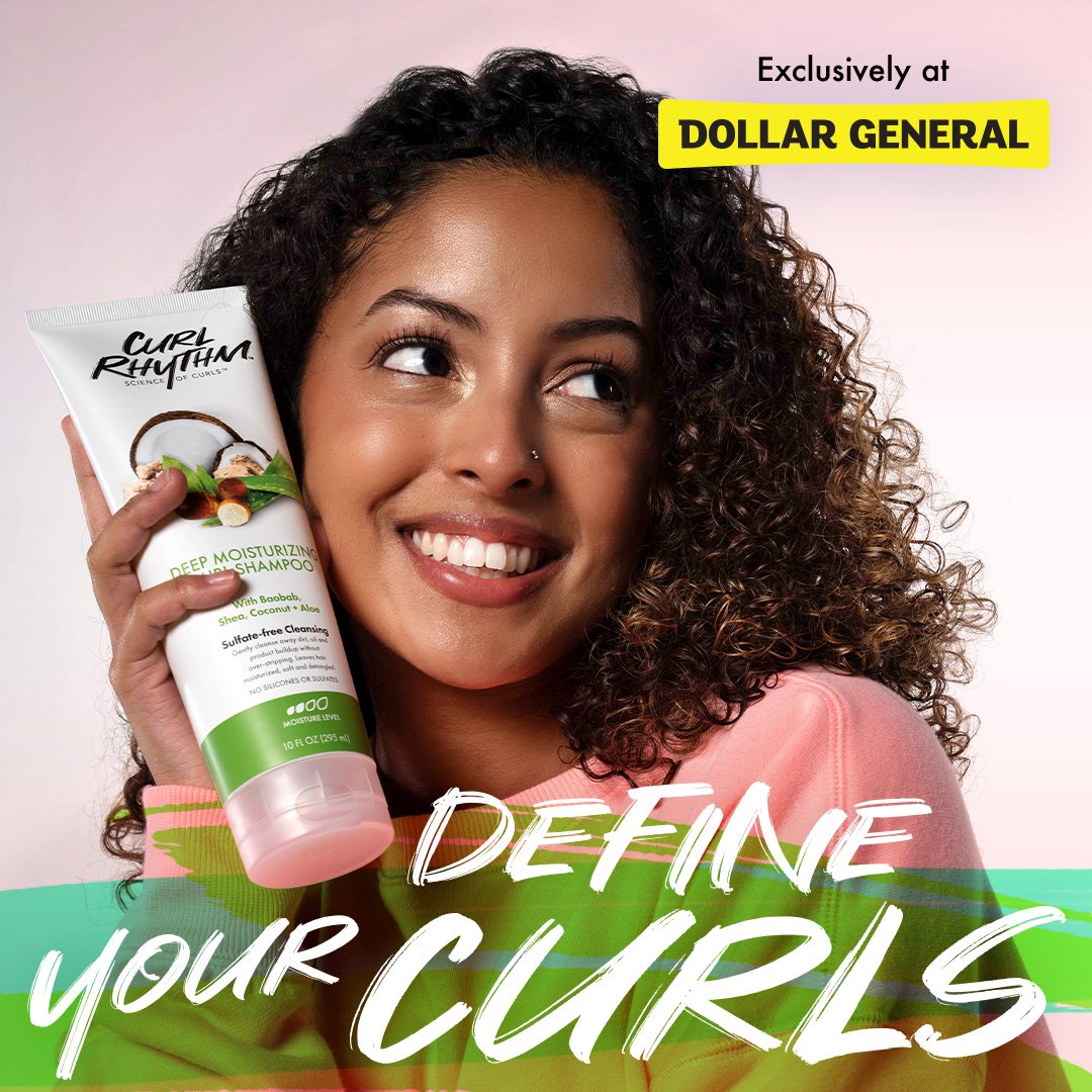 Curl Rhythm is designed to serve a community of women connected by the texture of their hair. Curls, coils, and waves come in all shapes and sizes, and they all need moisture, strength, and definition to look healthy and beautiful. We use a luxurious combination of butters, oils, and clean ingredients that combine science and nature in an affordable way. Formulated with our Curl Rhythm moisturizing complex of Baobab Oil, Shea Butter, and Coconut. Shop Curl Rhythm exclusively at Dollar General.