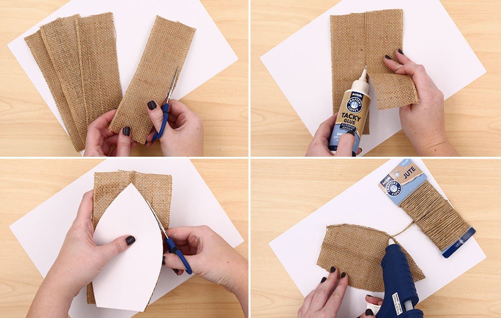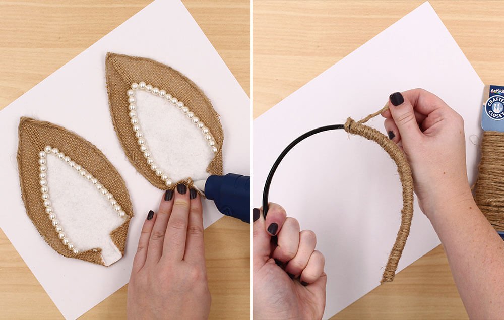 How glue jute twine around the two side edges of the ear. Repeat process to make the other ear.