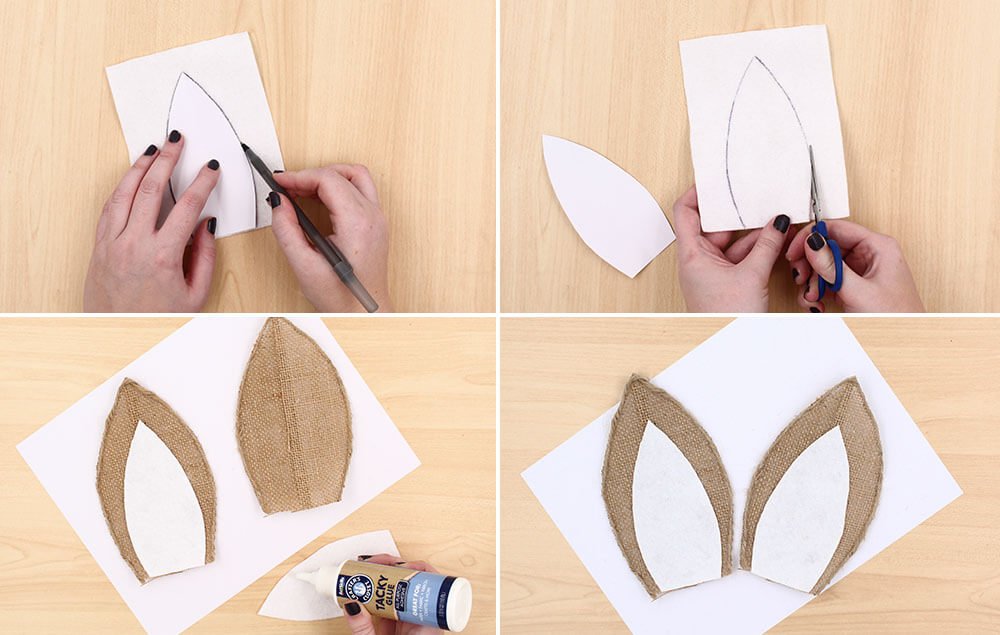 When dry, fold the ears up straight and hot glue in place to secure. Tip: Pushing the sides towards the front of the headband when gluing will help create a curved ear shape.