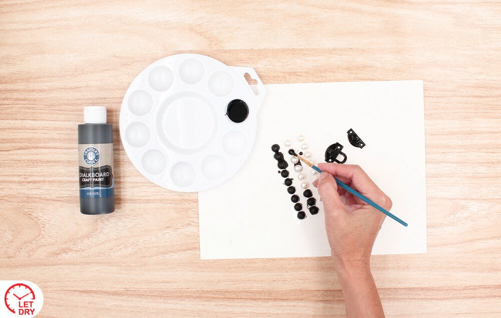 Use black chalkboard paint to liberally coat the pearls and the metal clasp. Let dry.
