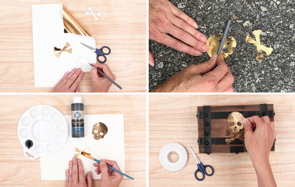 Cut out the skull and crossbones template. Trace onto gold foil paper and cut out the pieces.