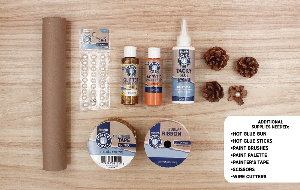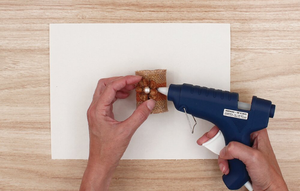 Use tacky glue to coat the outside of the paper tube. Adhere the burlap strip to the paper tube. Let dry.