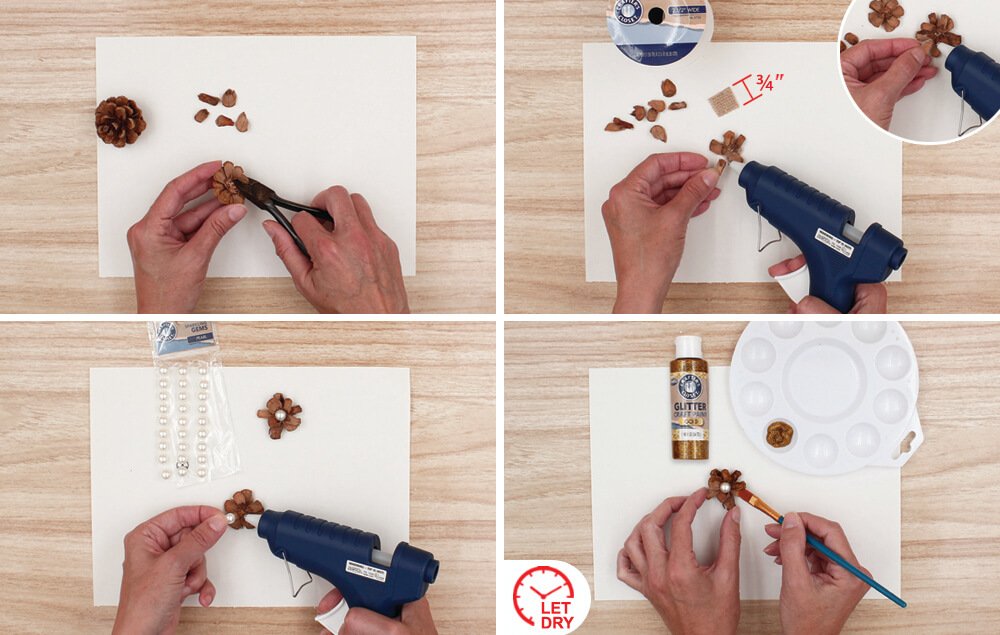 Paint the pinecone flower with gold glitter paint. Let dry.