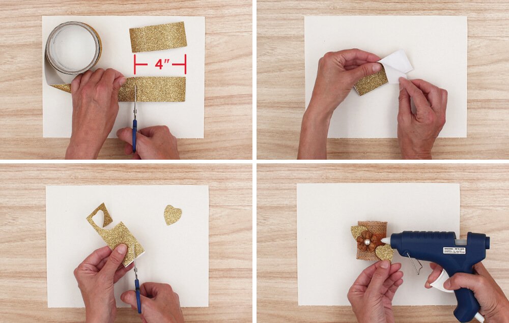 Paint the burlap napkin ring with gold glitter paint. Let dry.