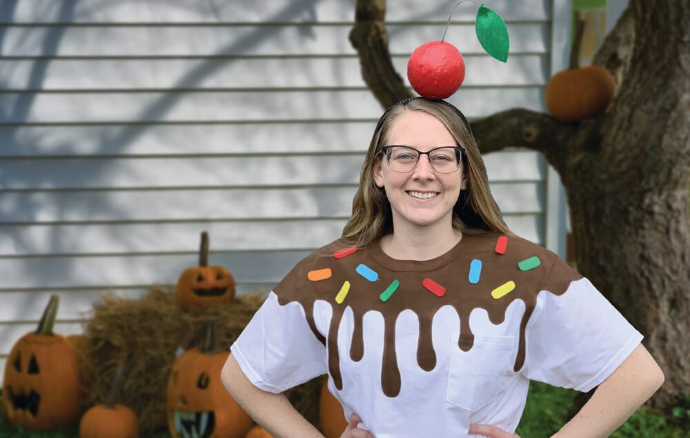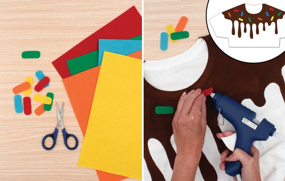 This Halloween costume really is oh-so-sweet! Transform a plain T-shirt and headband into a cute costume, complete with dripping chocolate, colorful sprinkles, and a cherry on top!