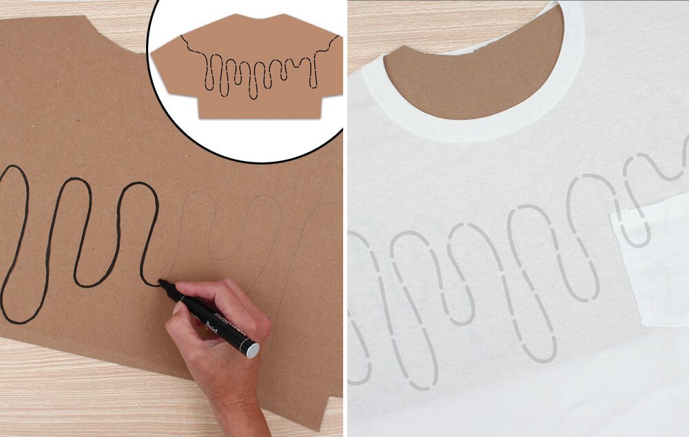 Place the template inside the T-shirt. You will be able to see the marker lines through the T-shirt material.