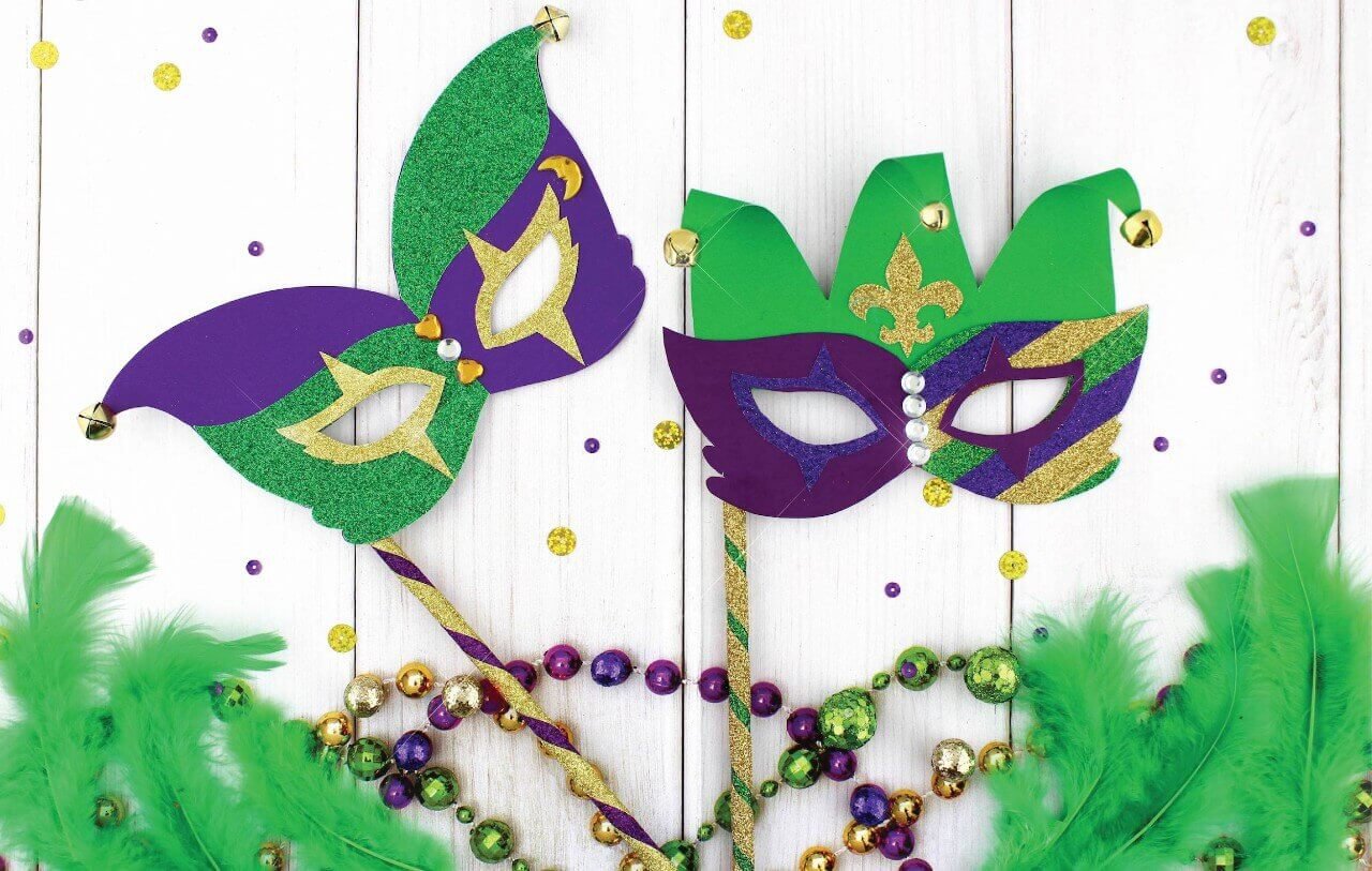 Celebrate Mardi Gras by dressing up, eating beignets and making this festive DIY Mardi Gras Mask!