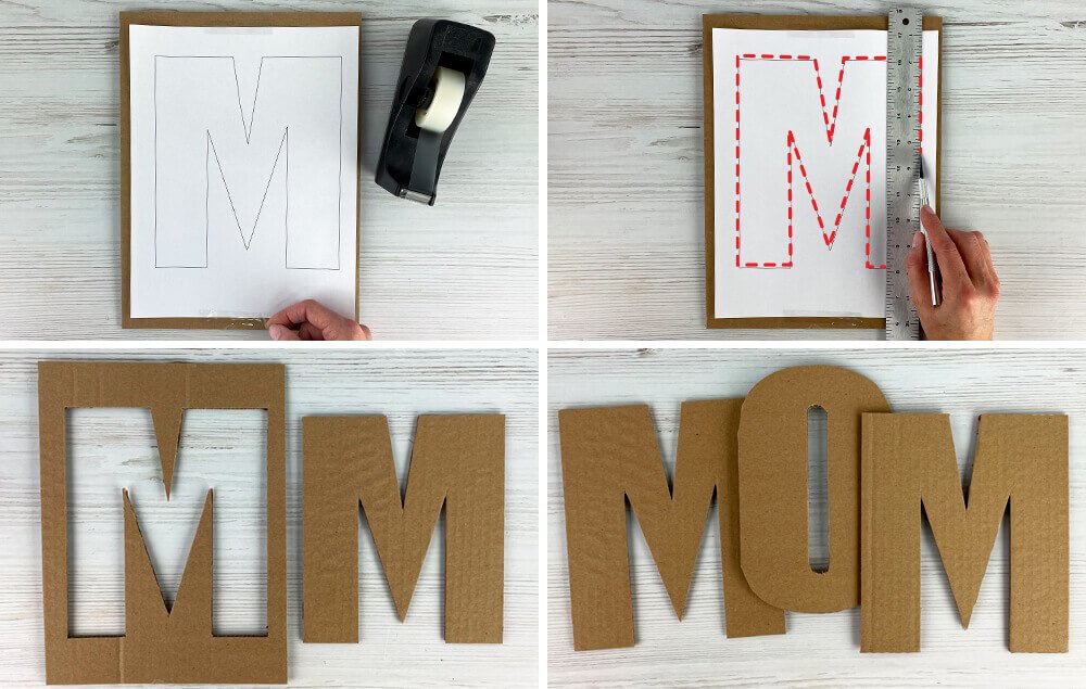 A) Tape a letter template to a piece of cardboard.