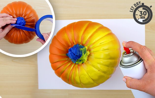 Cover the pumpkin stem with painter's tape, then spray paint the entire pumpkin. Let dry.