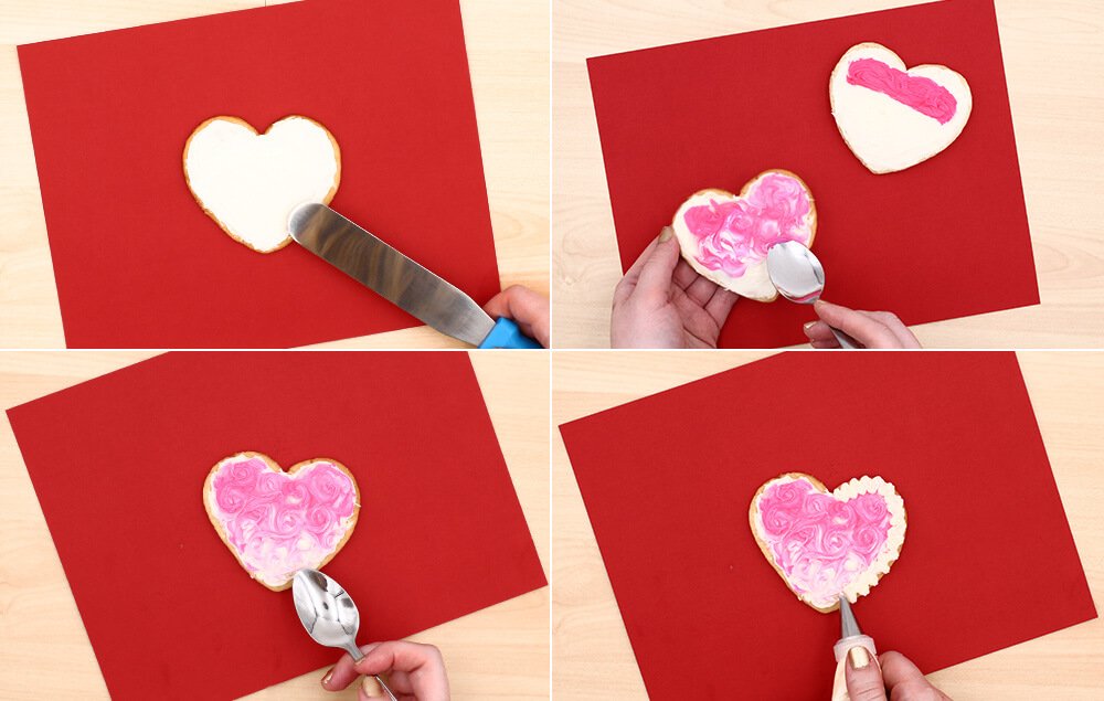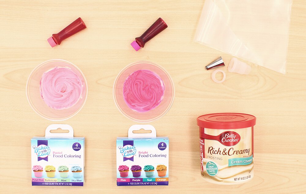 - Mix petal pink coloring with white frosting. Evenly apply it to front of cookie with spatula.