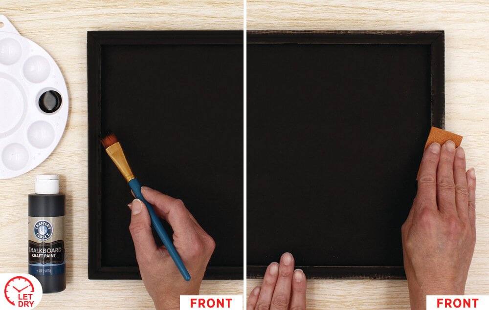 Cover the frame and canvas with black chalkboard paint. Let dry.