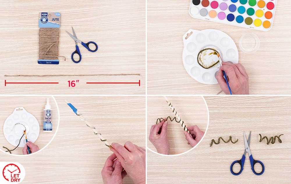 Coat the green jute with Tacky Glue and wrap the jute around a dowel or pencil. Tape the ends in place to secure. Let dry.