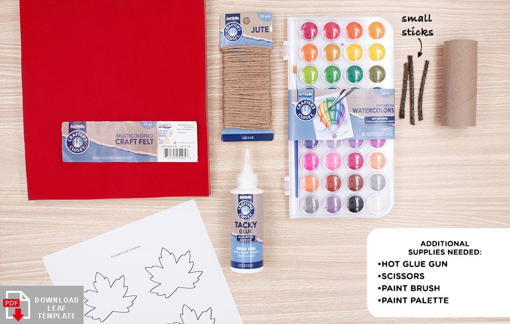 Use the pumpkin leaf template provided, or create your own pumpkin leaf template, and trace the leaf shape onto white felt. You will need two leaves.