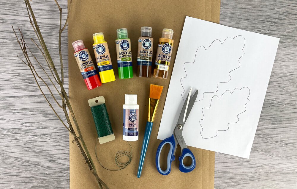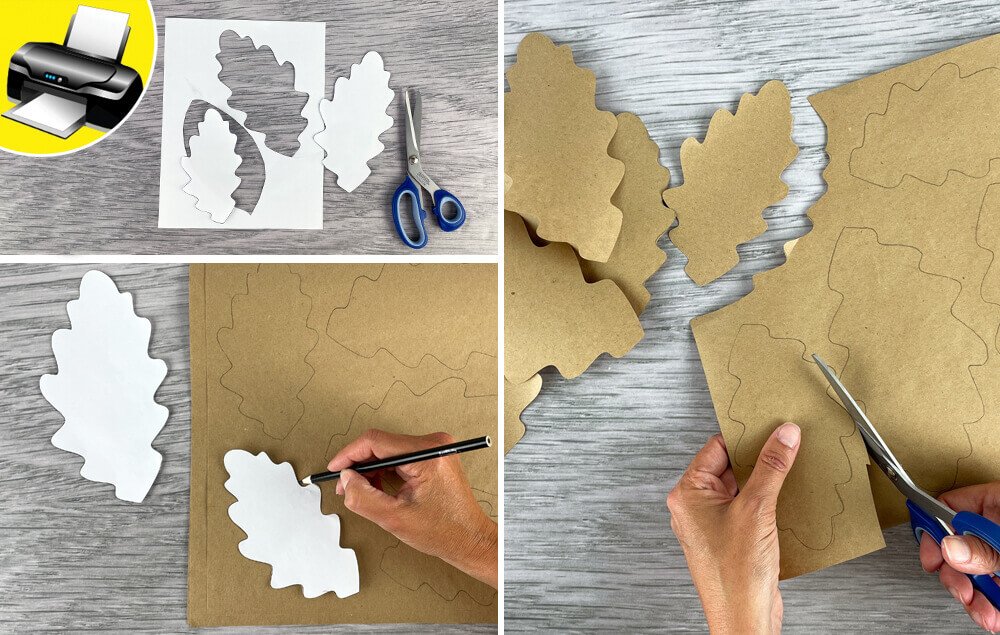 B) Trace the leaf template onto kraft paper or a paper bag.