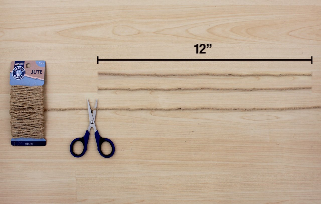 Cut jute into long manageable pieces. Set aside one 12” piece of jute aside for Step 7.