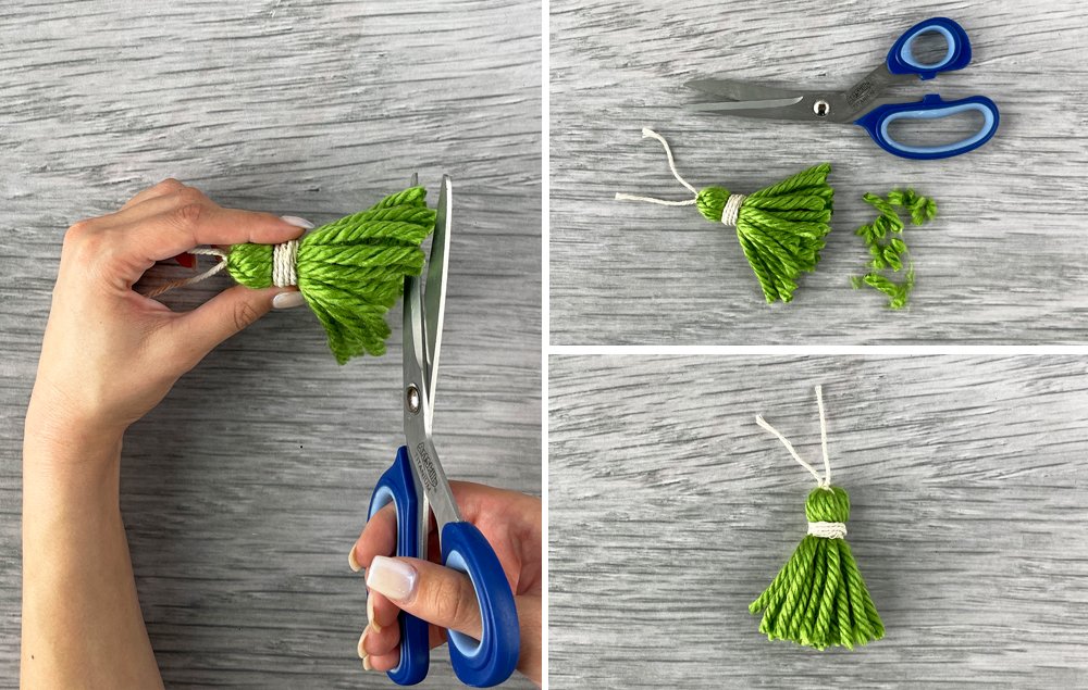 B) Trim the end of the tassel so the yarn ends are even.
