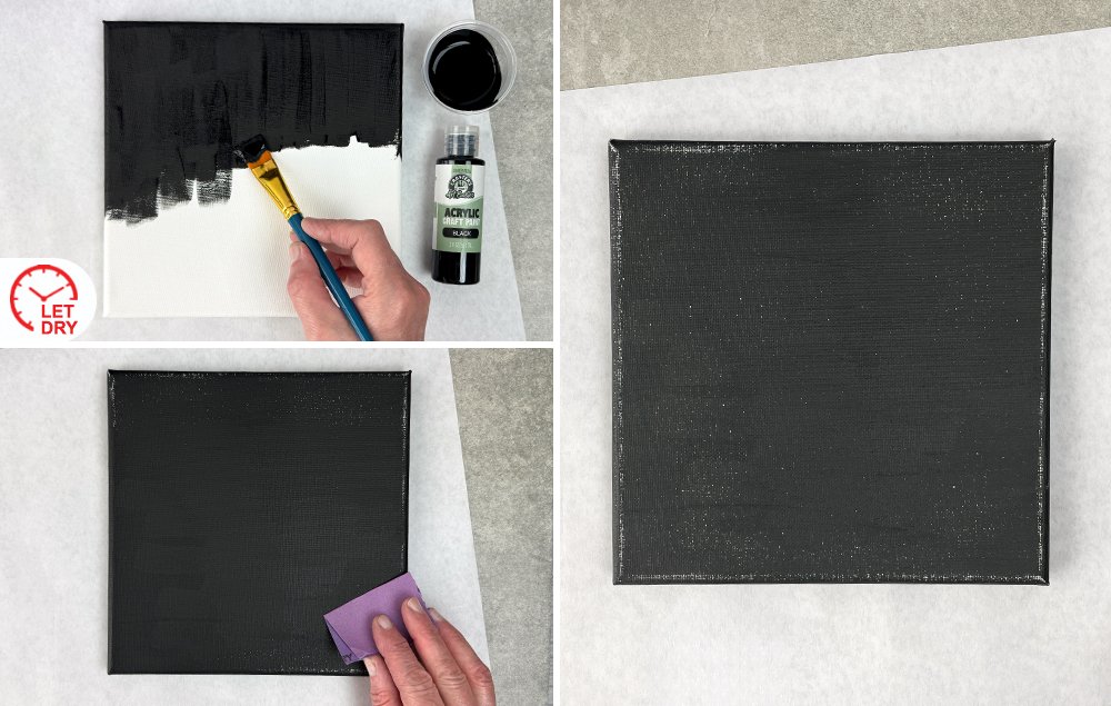 B) Use sandpaper to lightly distress the edges and surface of the painted canvas.