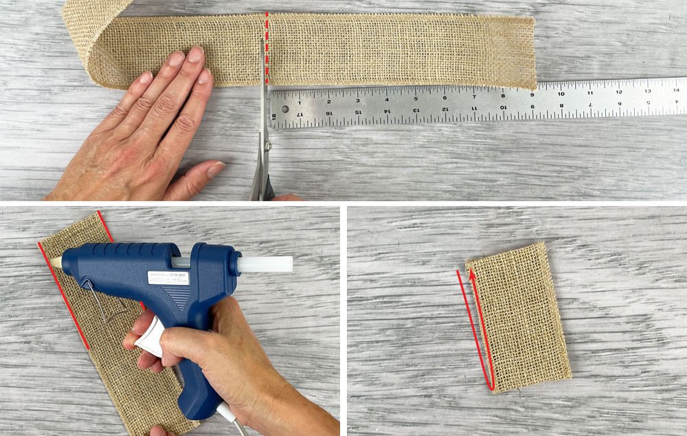 A) Cut a 9" length of burlap ribbon.