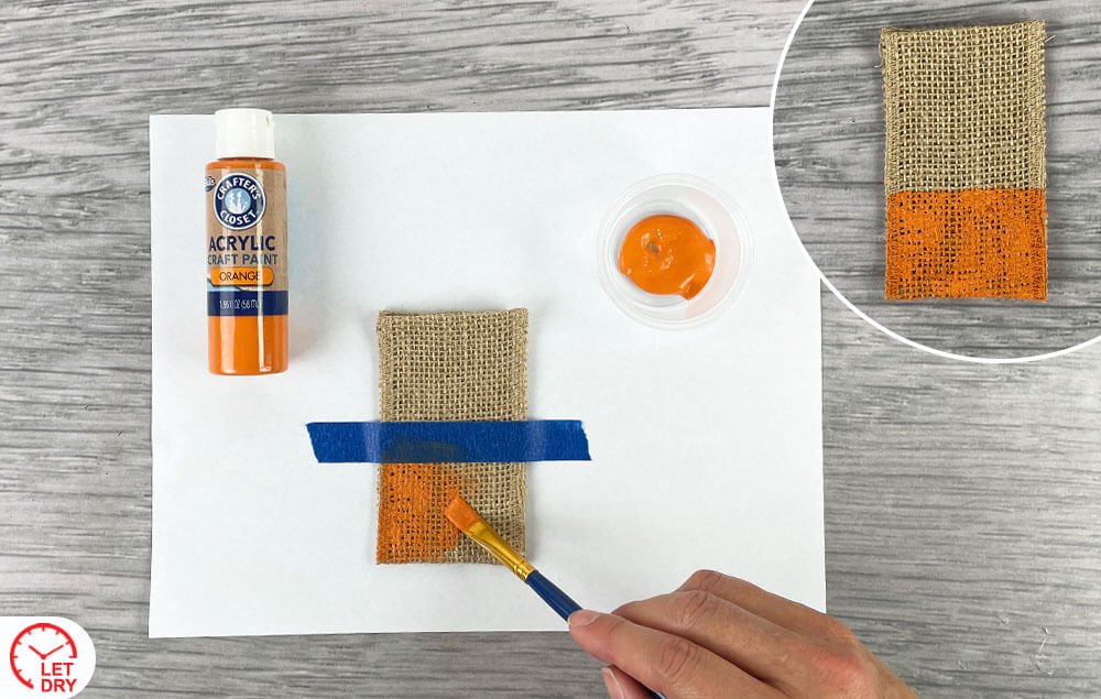 A) Use tape to mask off the bottom third of the pocket. Paint the bottom orange. Let dry.