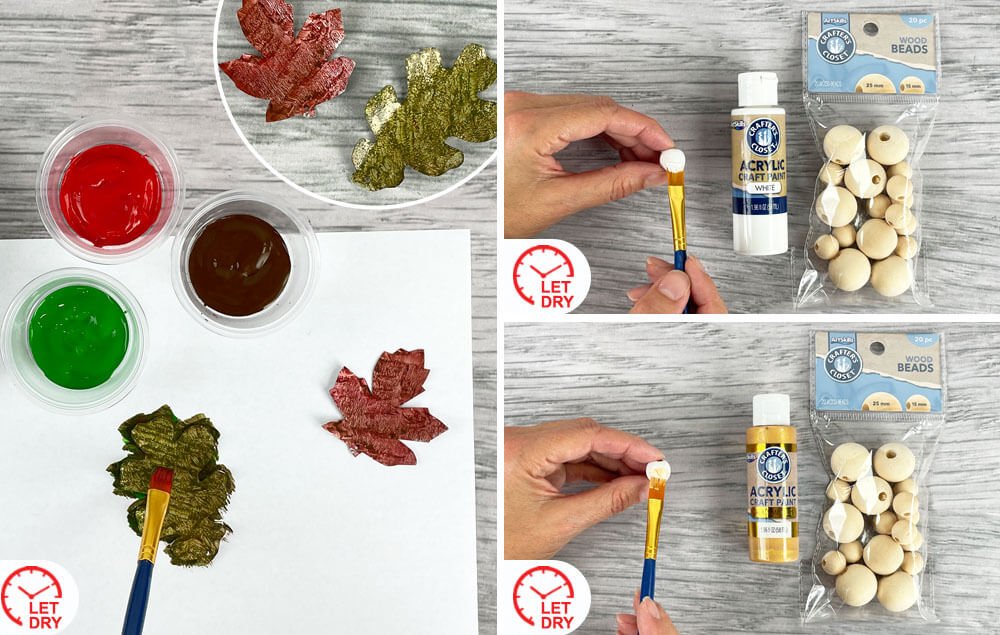 B) Paint one small wood bead white. Let dry.
