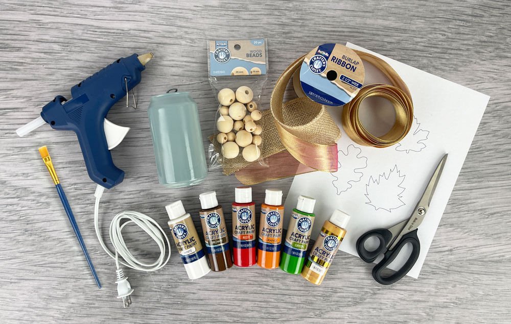 A) Paint the metal leaves. We used brown and red for one leaf, and brown and green for the other. Let dry.