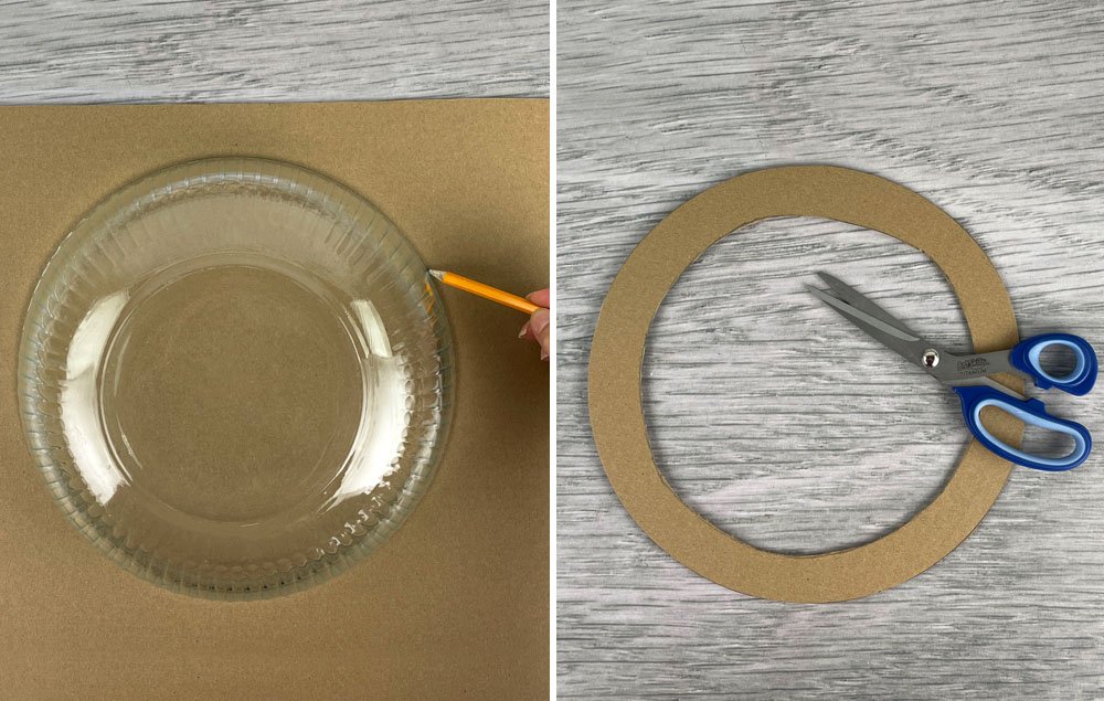 A) Trace a bowl that is similar in size to the wreath you’d like to make onto a heavy piece of cardboard.