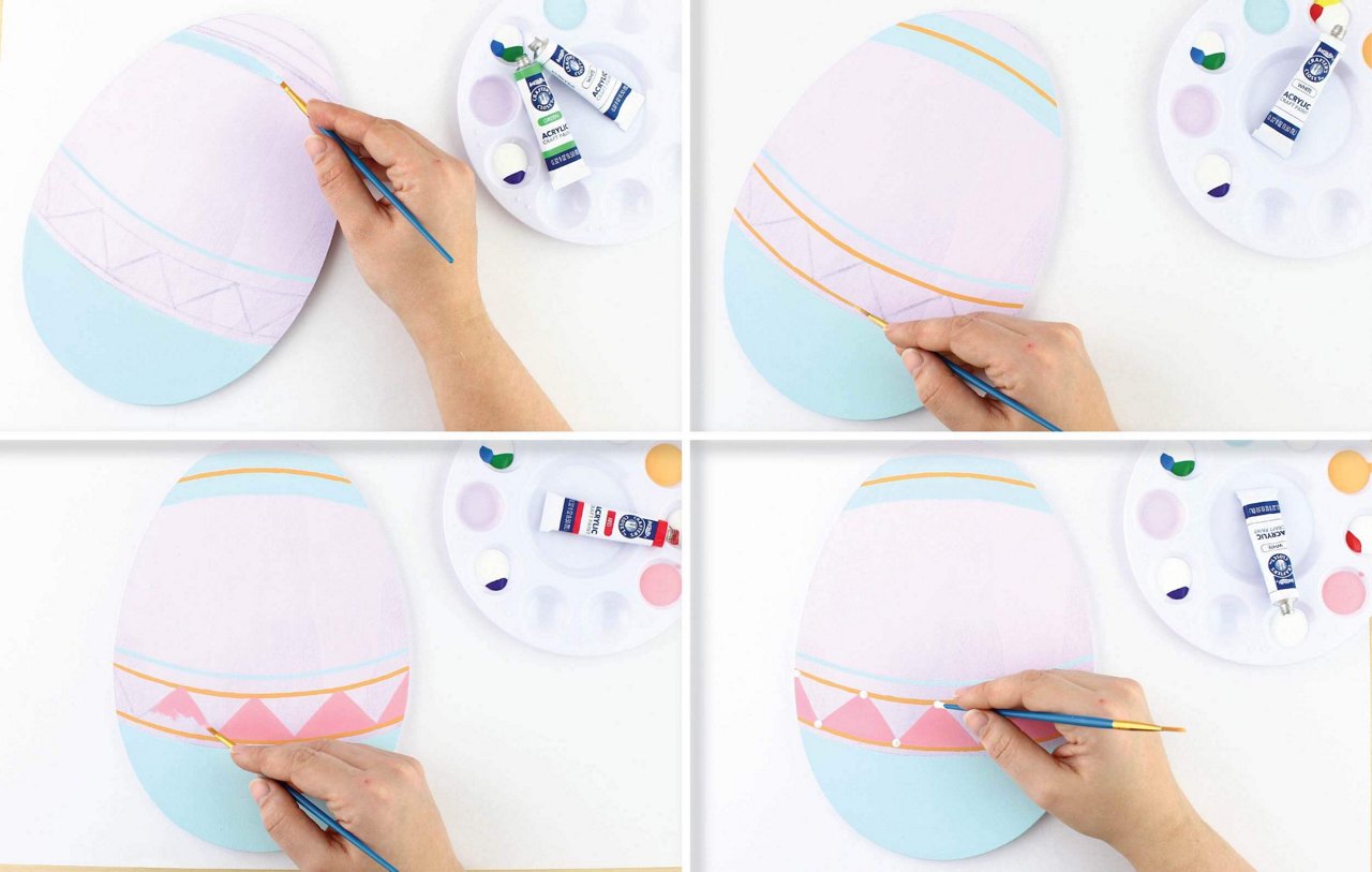 Mix together red, yellow, and white for a pastel orange. Add paint for details.
