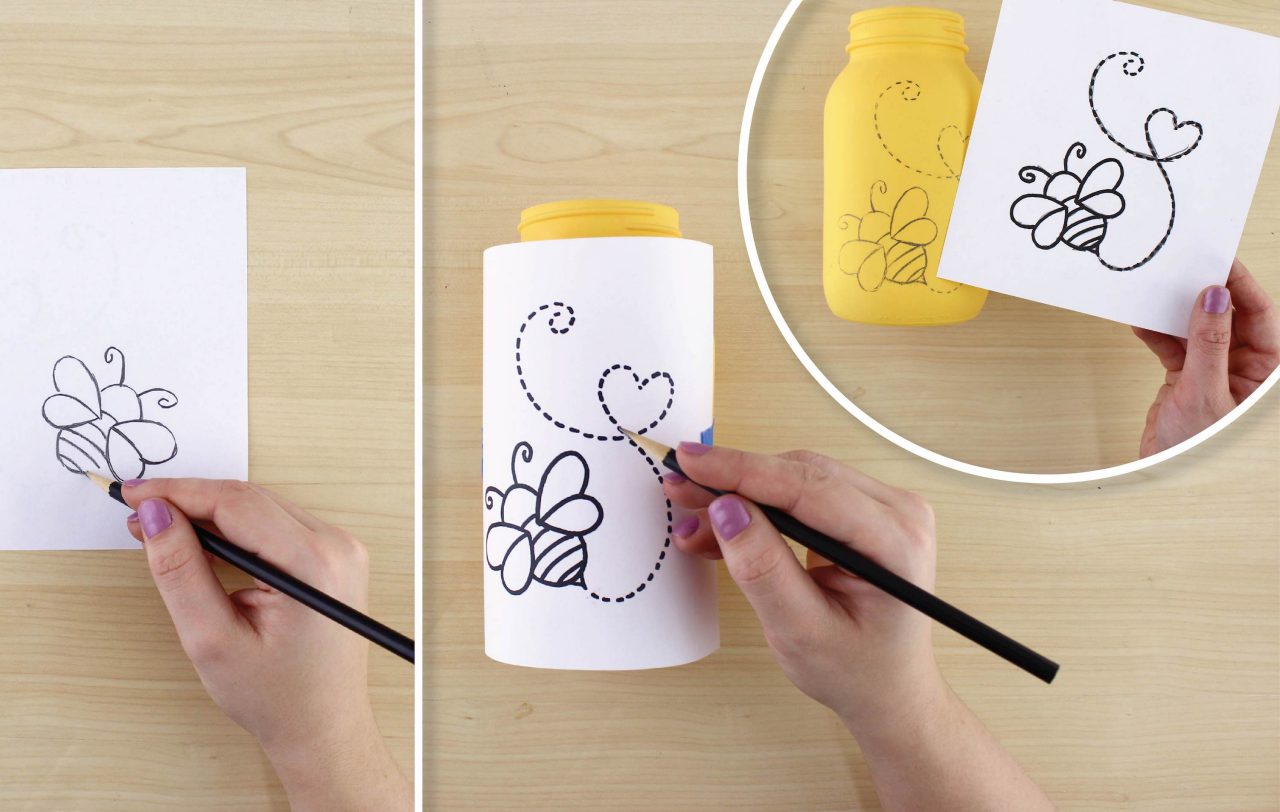 When you have the entire image traced on the back, position on the jar facing up and tape down if needed. Trace the image, on the front side this time, and then remove the template to reveal you transferred image!