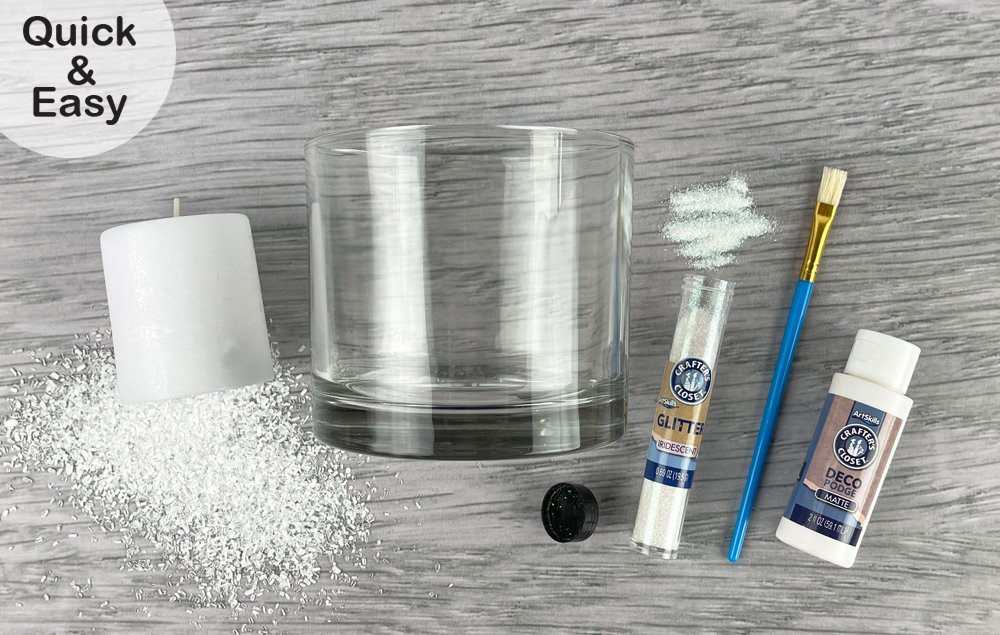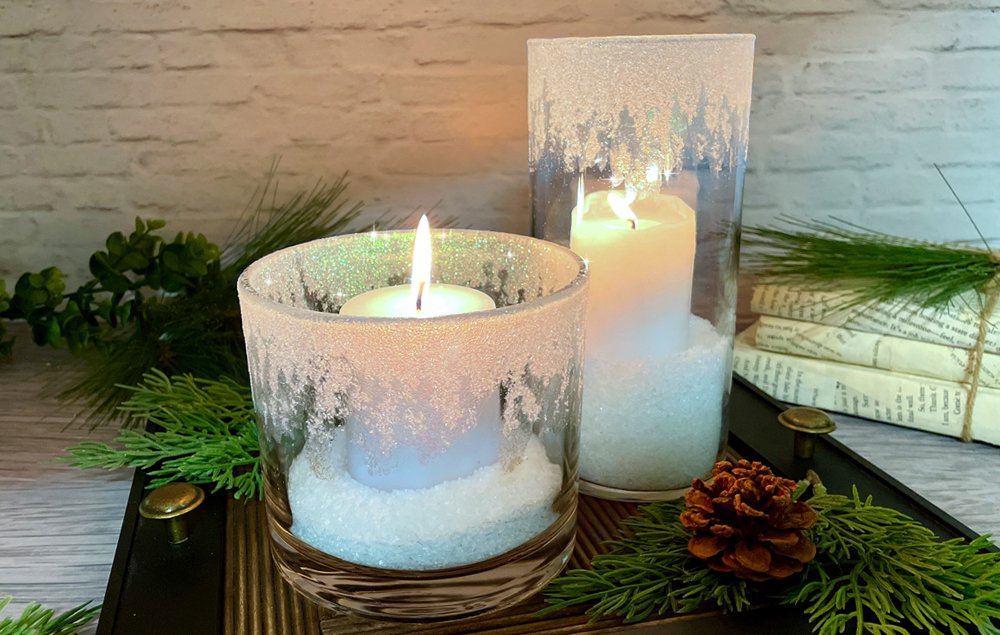 Create a glittery DIY candle holder for your winter decor! This easy craft is sure to add elegance and sparkle wherever it’s placed.