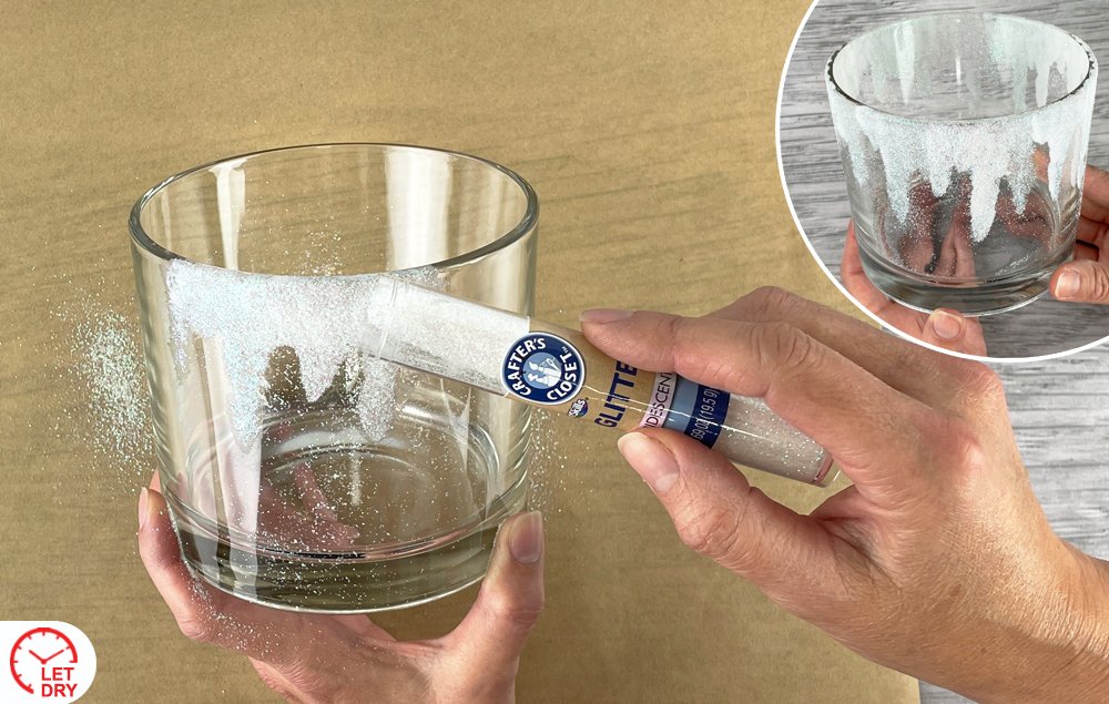 A) Pour glitter over the wet deco podge. Let dry.