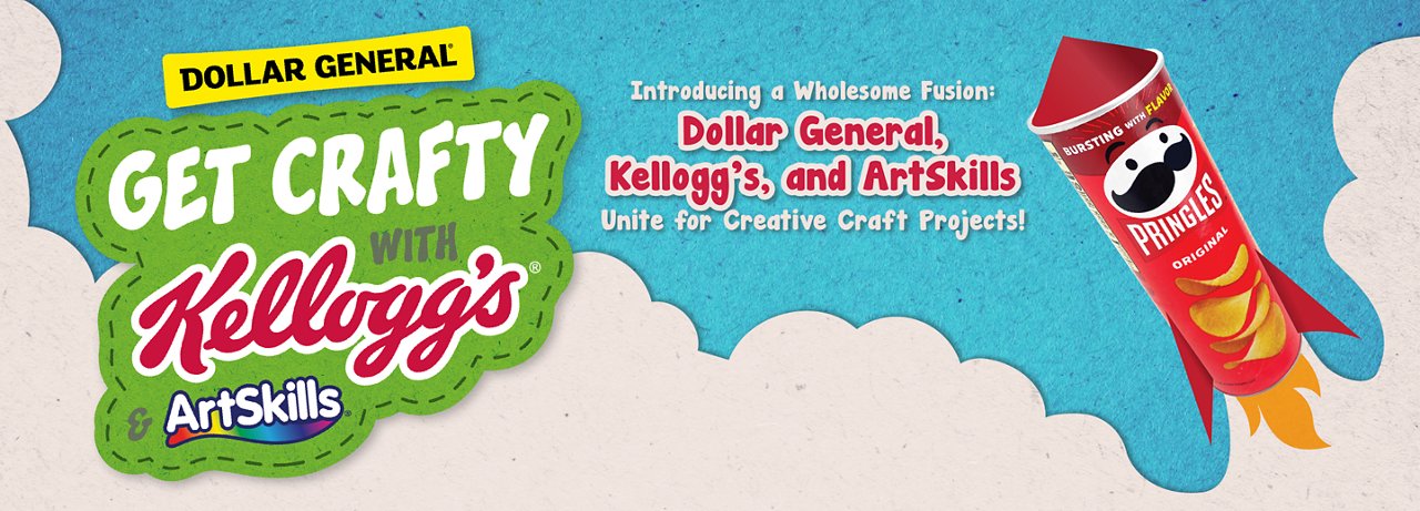 At Dollar General, we’ve always been committed to offering value and convenience to our customers. Now we’re taking it a step further by joining forces with Kellogg’s, a brand renowned for its delicious products. Together, we’re teaming up with ArtSkills, a leading name in creative arts and crafts supplies, to bring you a unique way to repurpose food packaging.