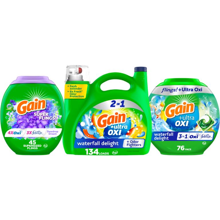 ONE Gain Liquid Laundry Detergent 134 Load/194 oz., or Flings 76 ct., or Super Flings 45 ct. Reg. $19.95