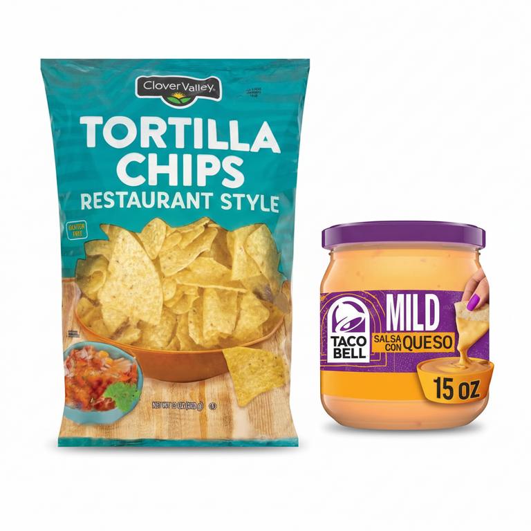 Buy ONE (1) Taco Bell Mild Salsa Con Queso, Get ONE (1) Clover Valley Tortilla Chips Free