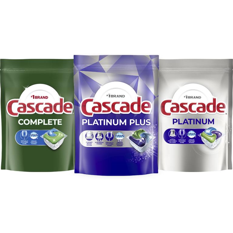 ONE Cascade Platinum Plus 7ct or Larger, Platinum 9ct or Larger, or Complete 13ct or Larger Dishwashing Detergent (excludes travel/trial size).